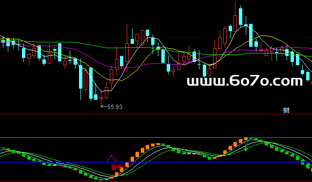 再往后,通过两次EMA平滑(QW6和RK7),过滤掉短期噪音。最终生成两条线:"涨"和"跌"。注意,这里的"涨""跌"不是字面意思,而是经过处理后的动量信号线。