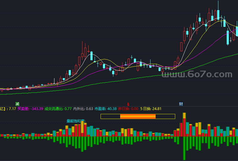 量能饱和:=IF(SAT>1,1,SAT)*100,COLORYELLOW,NODRAW;