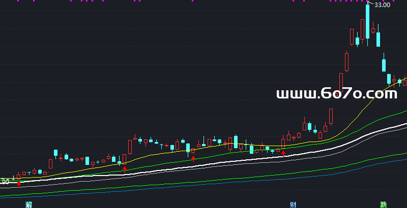 当"点火"(A)、"有资质"(B)、"阵型好"(M)三个条件同时满足,指标就会在K线下方画出一个醒目的红色箭头 ⬇️🔴