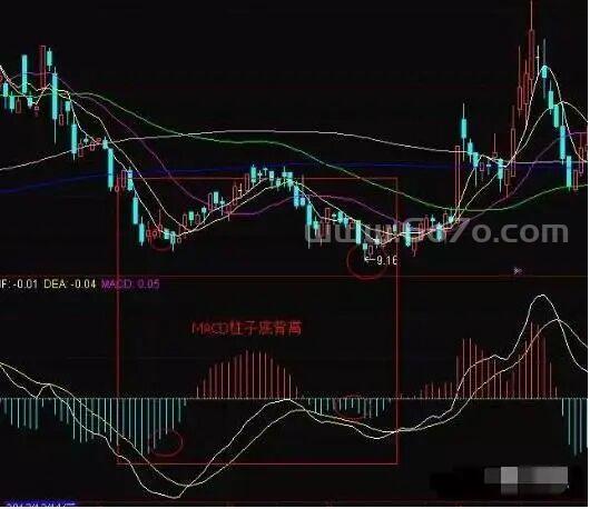 MACD柱子出现的底背离和DIF、DEA等出现的背离意思一样,都是见底的信号。