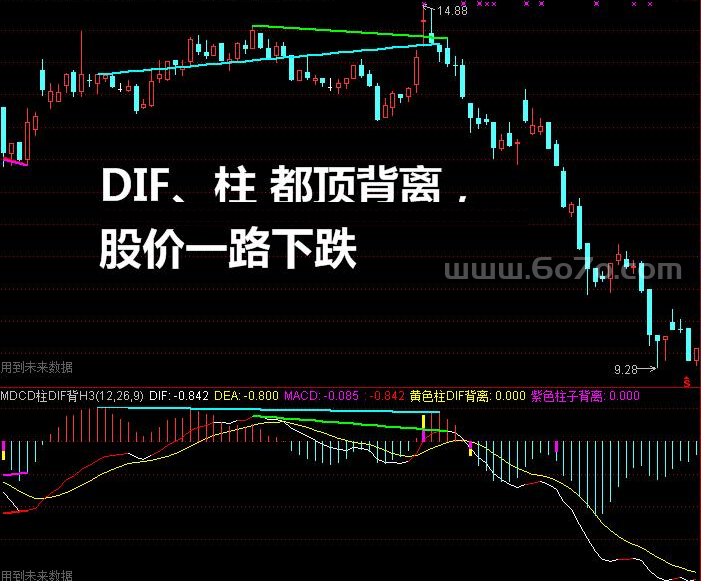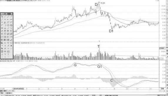 从DIF线高位背离来看:DIF线在G1位置反弹,却没有超过前期的G位置高点,表明MACD指标提示的顶部形态已经出现了。背离和天量顶部同步形成,这是考虑卖掉股票的信号 ⚡