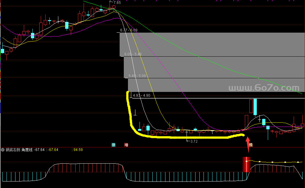 这里用12日均线的角度来衡量趋势。很多人喜欢追涨,但这指标偏偏要在角度线<0的时候出信号。这看起来是不是有点反直觉?其实这正是 "U底右侧"战法的精髓所在 🎯