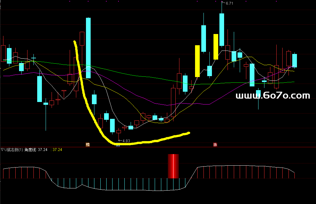 因为我们太依赖眼睛看到的"形状",而忽略了形状背后的"动能"和"位置"。今天要给大家拆解的这个 "U底右侧"指标,就是专门为了解决这个问题而生的。它不是简单的画线,而是一套融合了位置判断、筹码分析、趋势角度的量化模型 📊