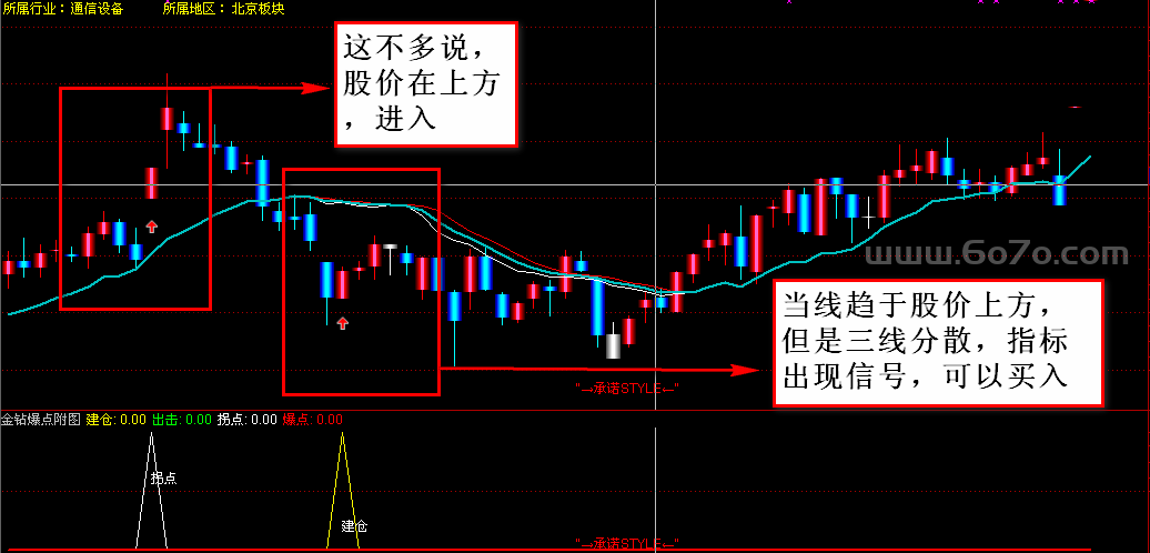 逻辑:股价突破关键压力位,同时KDJ没进入超买区,说明上涨动力足,不是"假突破"。