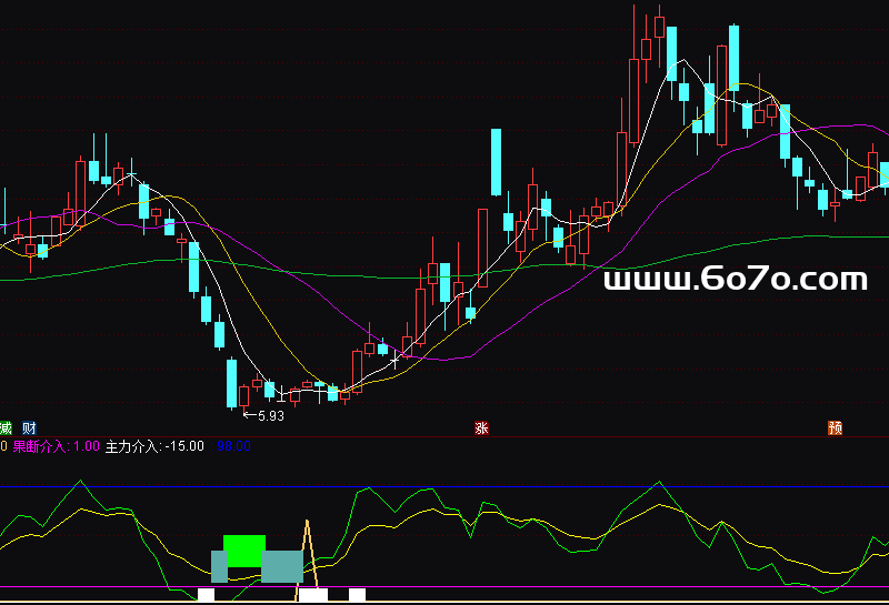果断介入: IF(CROSS(J,VARB) AND COUNT(VAR5<-12,3)>=1,95,1),COLORMAGENTA;