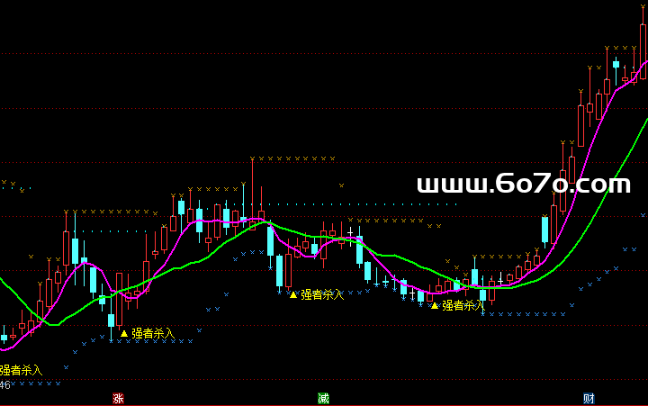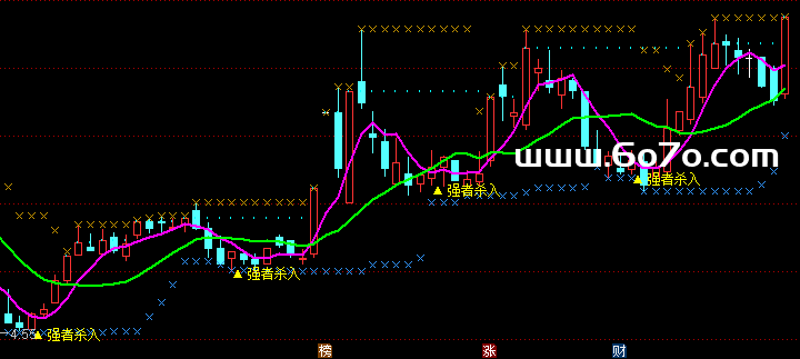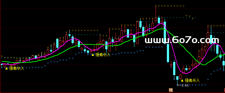 最后,选股点怎么来的?它综合了以上逻辑:当趋势向上、动量回升、量能配合,且股价"回踩"支撑位时(回踩条件),指标就标记"强者杀入" 🏹
