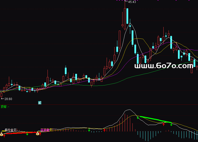 DRAWTEXT(低位金叉,0.16,' 低位金叉'),COLORWHITE;