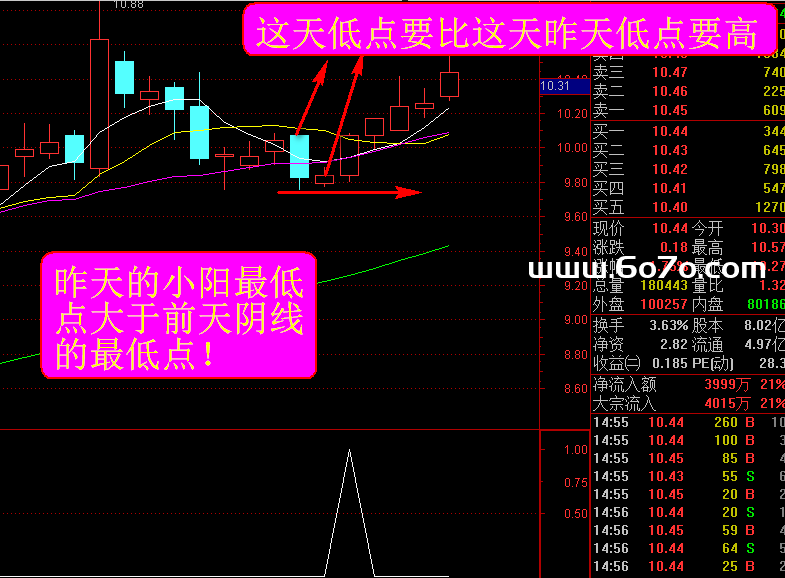 K线语言:连续两根阳线反包前一根中阴线,且阴线实体明显(开盘价比收盘价高2%以上),这是空方力竭的典型信号;