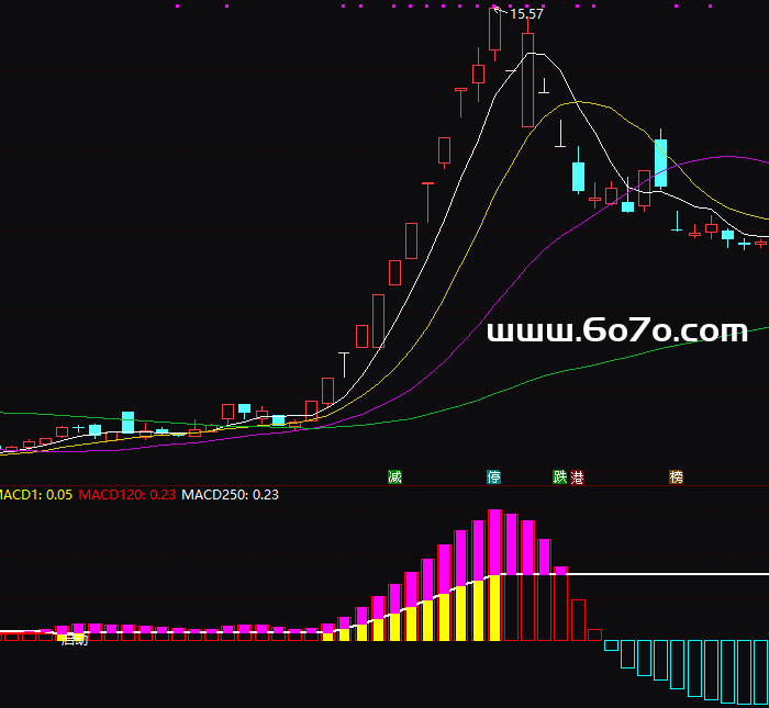 MACD120:过去120个交易日内MACD1最高值的一半位置(红线) MACD250:过去250个交易日内MACD1最高值的一半位置(白线)