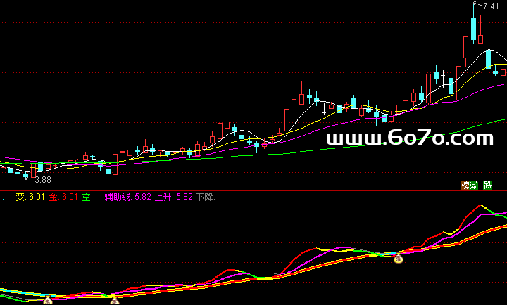 所以,整个"战鹰"指标的逻辑链条就很清晰了:先通过"重心"看清短期真实共识,再用"操盘线"定好多空基调,最后通过监测像DA这样的动态攻击线是否有力突破并确认,来寻找主力可能发动行情的"关键共振点"。 它把价格、量能(隐含在计算中)、趋势、力度几个维度糅合在一起,化繁为简成几根颜色分明的线。