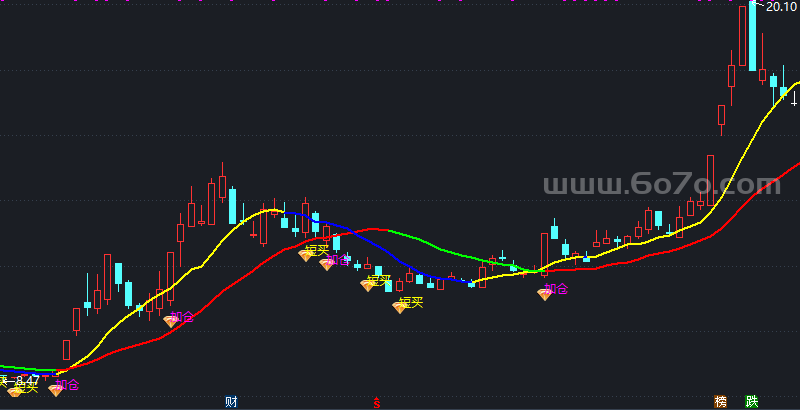 这个指标的聪明之处在于,它给这两条线加了"变色"功能。当9日均线从上涨转为下跌时,黄线会变成蓝线;当21日均线从上涨转为下跌时,红线会变成绿线。这变色的瞬间,就是趋势可能"变脸"的警示灯。对你来说,这意味着什么?很简单:当你看好的股票,它的黄线或红线突然"由彩变蓝/绿",你就要多一份警惕了,这可能代表短期或中期的上涨动能衰竭了,是考虑减仓或观望的信号,帮你主动规避风险。