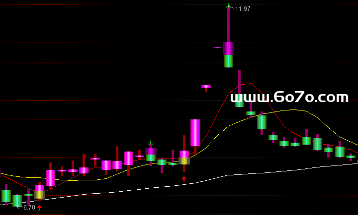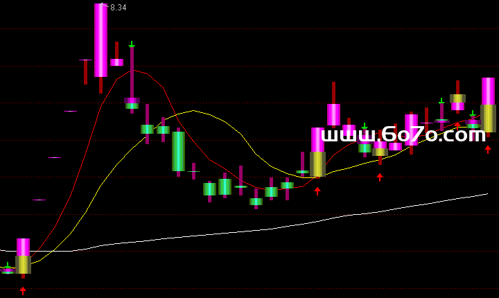 所以,"输出买入"的条件,就是这个临界点出现时,在最低价下方0.1元处画个标记。