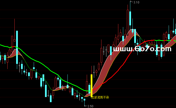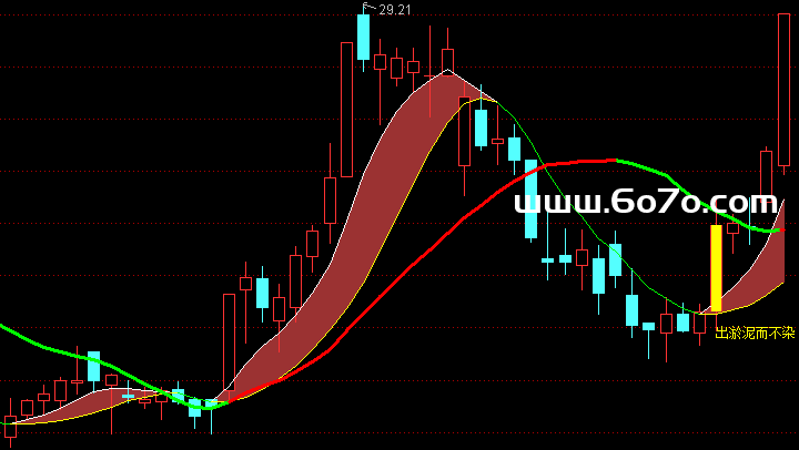第二步:等信号——某天股价涨到10.2元(上穿MA600),涨幅4%,成交量是5日均量120%。这时软件自动画黄色柱("芙蓉出水"信号),果断关注。
