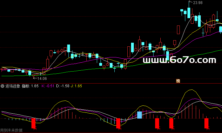 ③ 只在副图负14位置显示——刻意避开主图干扰,强迫你看"结构而非价格"