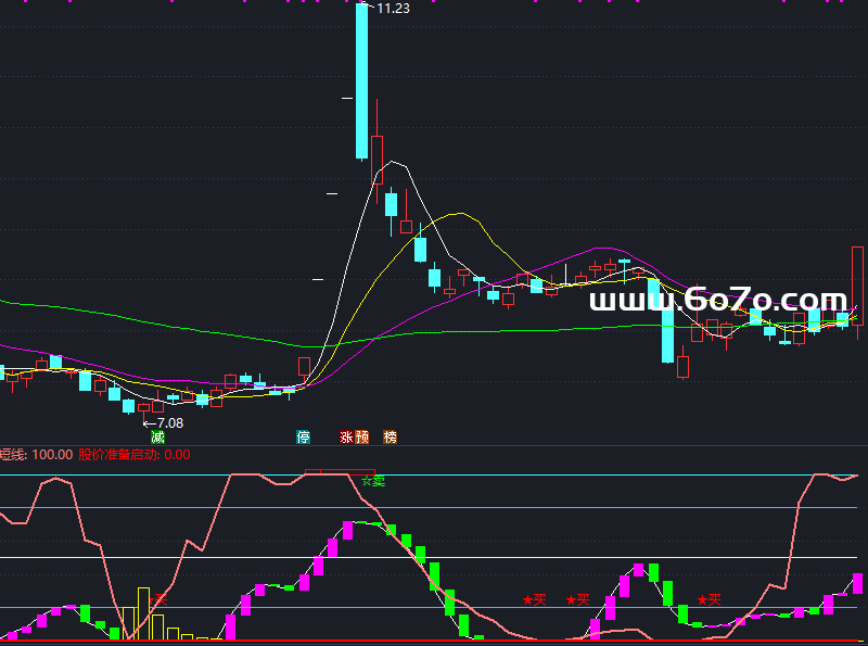 股价准备启动:IF(CROSS(VAR21,VAR11),100,0),COLORRED,LINETHICK2;