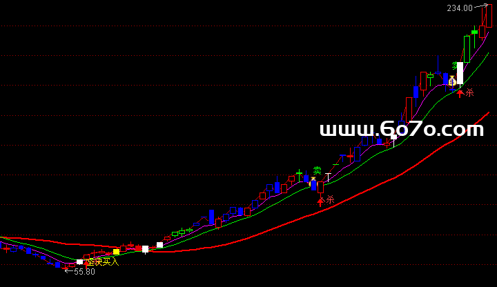 理解了核心的三线逻辑,这个指标里其他的图标(如金叉买入、死叉卖出提示)和K线变色功能,就都是辅助判断的小工具了。它们能帮你更直观地看到短期趋势的强弱分化(蓝色K线表示弱势调整,红色K线表示强势上涨)。