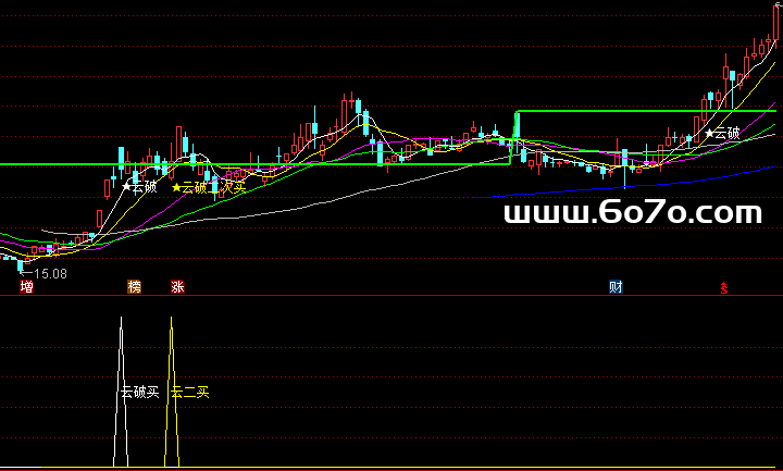 相信很多朋友都遇到过一种情况:某天股价大幅高开,最后却收了一根阴线,看上去像是涨不动要跌了。但过几天它不跌反涨,而且还突破了之前的高开点,形成强势拉升。很多朋友追悔莫及:原来是洗盘啊!"云指破"指标就是为了帮你提前识别这种主力常用洗盘手法的"后招"。