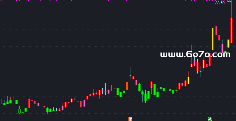 建议展示:绿色系空头K线、蓝紫色系多头K线、亮黄色倍量柱/涨停板、蓝色危险倍量柱的对比效果图 📊