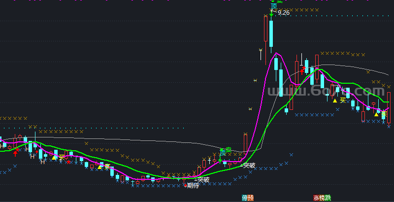 DRAWTEXT(突破,L*0.99,'△突破'),COLORFFFFFF;