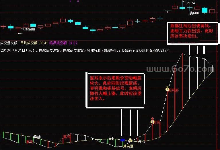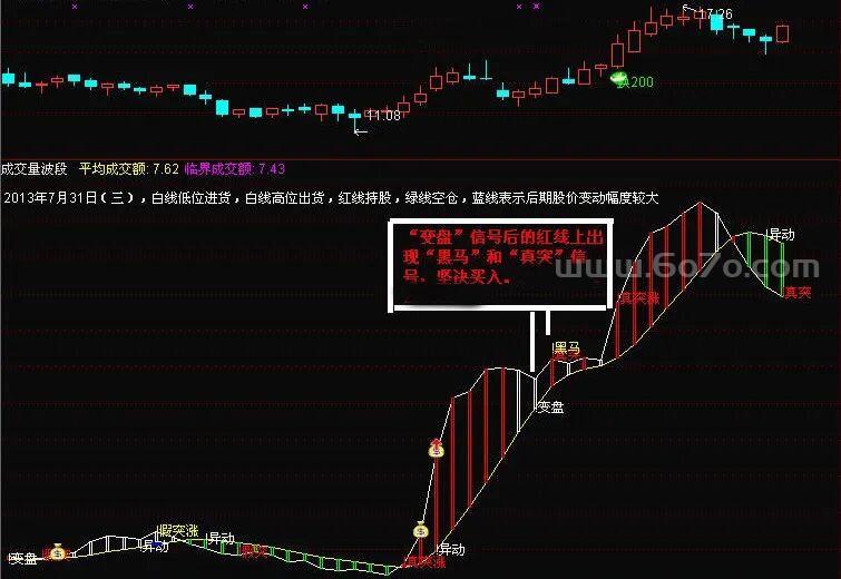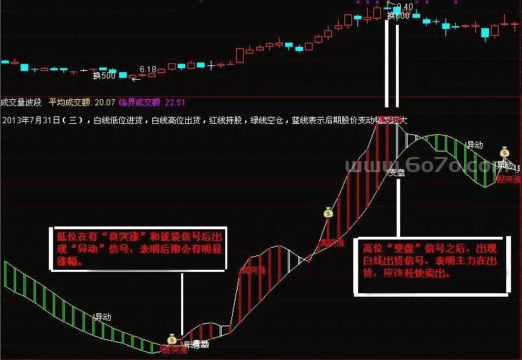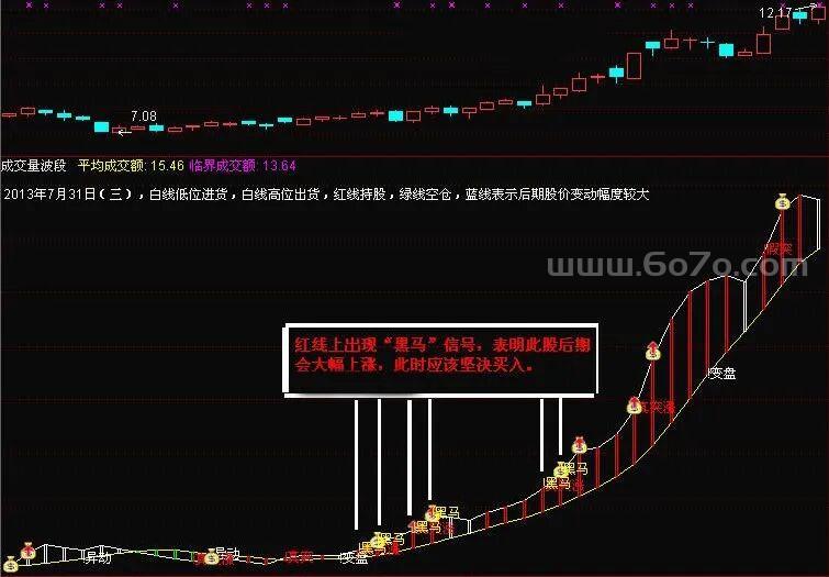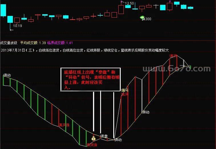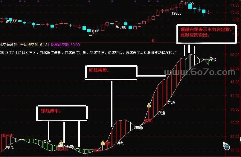 绿线代表量能严重不足。当今日成交额低于近期平均水平的临界值时,绿线就会亮起。绿线是大盘或个股进入弱势阶段的警示信号。
