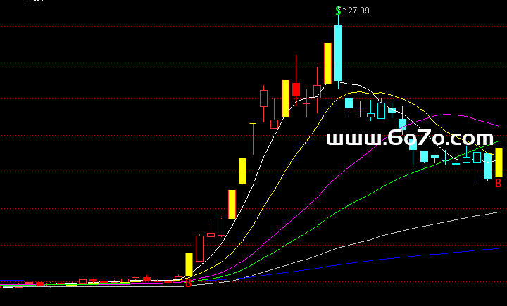 当满足条件BUY1<SELL1ANDO<=收盘价时,在收盘价和最高价位置之间画柱状线,宽度为0,1不为0则画空心柱.,画青色