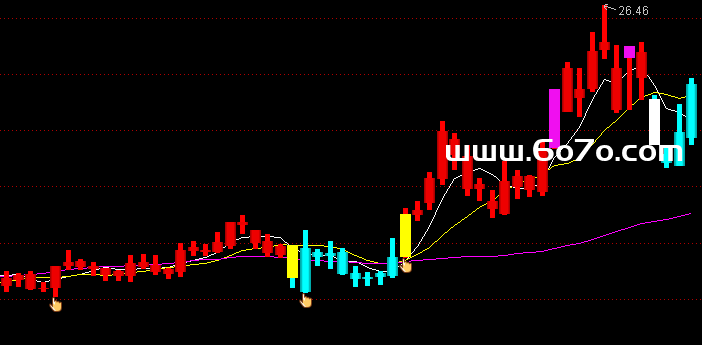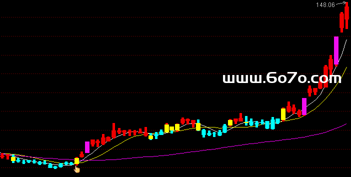 当满足条件买线上穿卖线ORCROSS(卖线,买线)时,在开盘价和收盘价位置之间画柱状线,宽度为3,0不为0则画空心柱.,COLOR00FFFF
