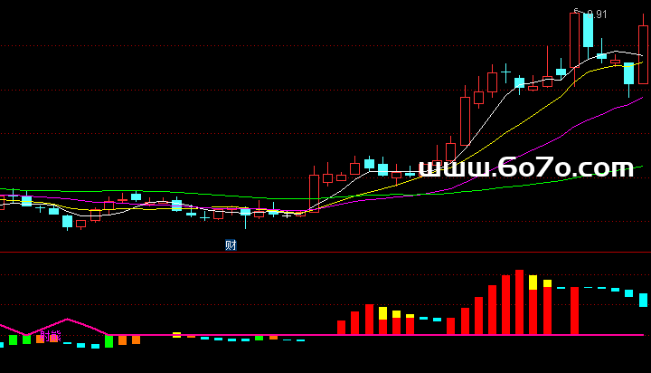 输出观望: 当满足条件VAR6<1日前的VAR6ANDVAR8>1日前的VAR8ANDVAR6>0时,在VAR6和VAR8位置之间画柱状线,宽度为2,0不为0则画空心柱.,画黄色