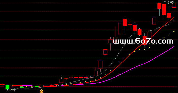 输出 工作线:(收盘价的17日指数移动平均) ,POINTDOT,线宽为4,画黄色