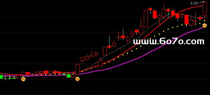 K线颜色的逻辑也很直接:收盘价在工作线(EMA17)上方,画红色;在工作线下方,画绿色。这让你一眼就能判断当前价格处于哪个区间。