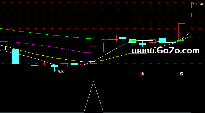 趋势线赋值:V11的3日指数移动平均,线宽为2,画淡洋红色