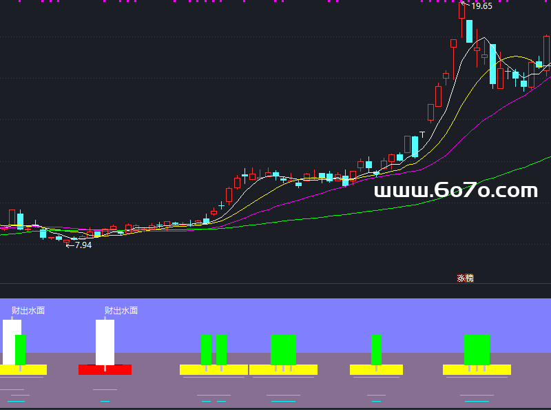 DRAWTEXT(A1,36,'财出水面'),COLORWHITE;