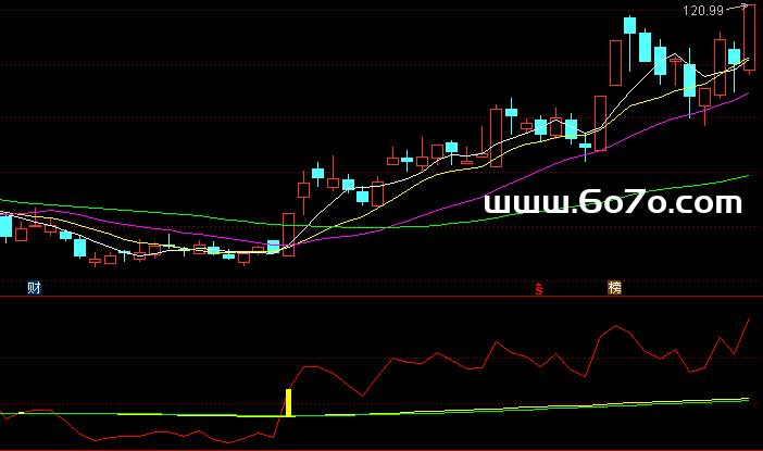 把三者放在一起看:红色的A线是最灵敏的实时位置,绿色的D线是对B线的快速跟踪,黄色的B线是长期基准。当A线上穿D线,相当于"短期位置超过了快速跟踪线",说明股价在短期内的上行速度开始加快,有加速趋势 🚀