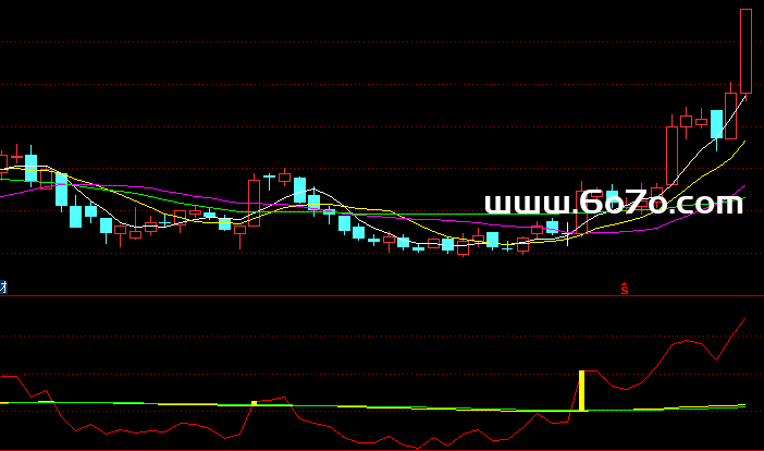 当满足条件A上穿D时,在B和A位置之间画柱状线,宽度为1,0不为0则画空心柱.,画黄色