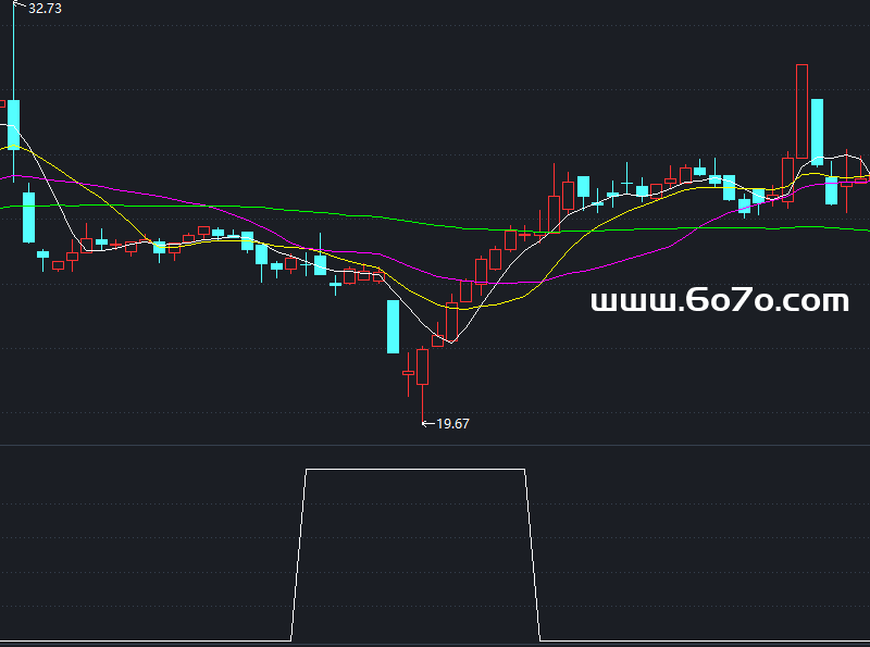 指标最后一行,(DOU - DOUDOU) < 6.18,发出了"不怕死就买"的信号(这名字起得挺江湖,意思是你得有点胆识)。
