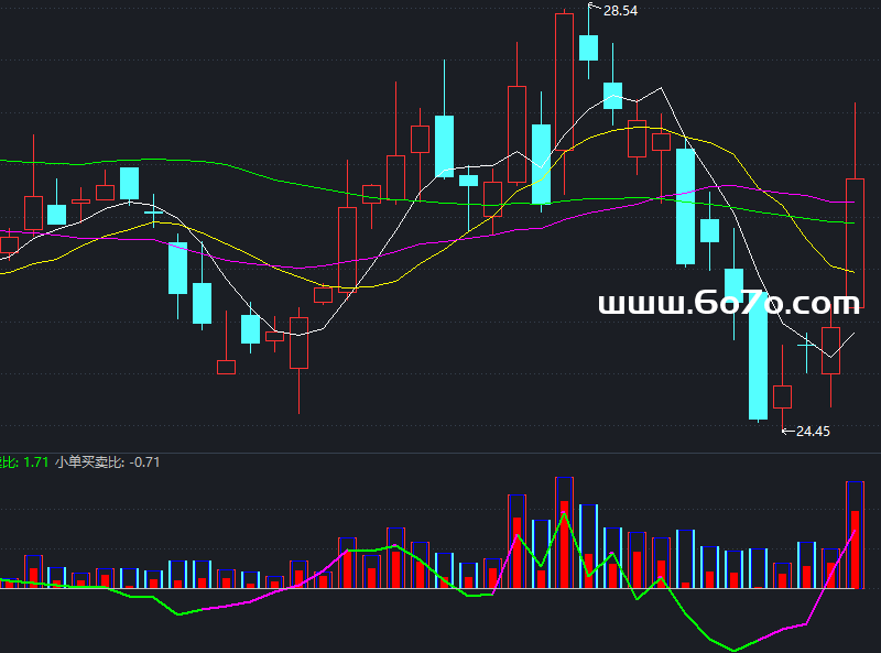 小单买卖比: 反过来看散户的动作。如果大单比猛增,小单比下降,往往是主力进、散户出的好现象;反之,就要警惕了。