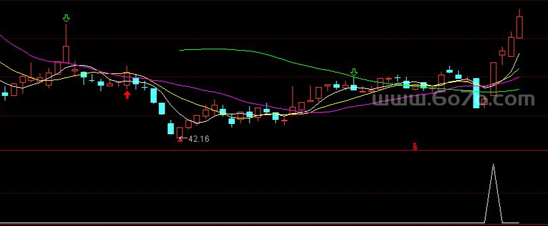 QQ7赋值:收阳线AND 收盘价/1日前的收盘价>1.03 AND 1日前的收盘价<收盘价的5日简单移动平均 AND 收盘价>收盘价的5日简单移动平均 AND 最高价=收盘价