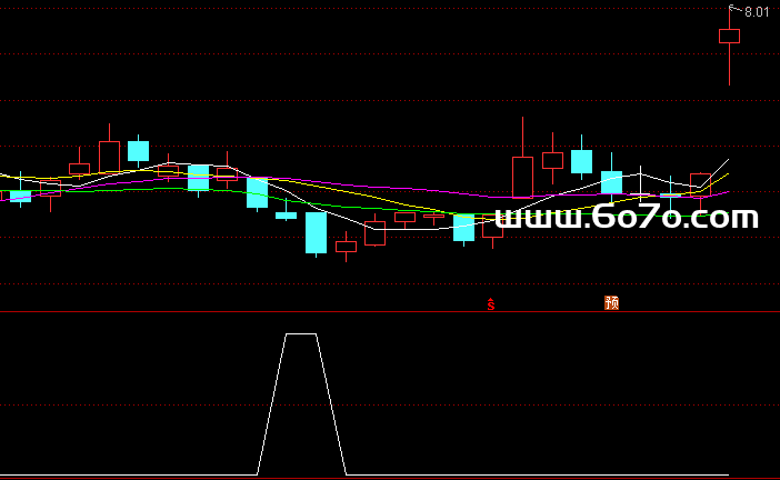 VAR888赋值:如果最低价<=VAR55,返回(VAR44+VAR66*2)/2,否则返回0的3日指数移动平均/618*VAR77