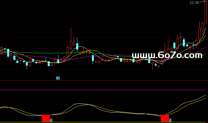 VAR6的条件是:VAR3上穿VAR4(波上穿段,金叉),并且VAR3必须小于20。