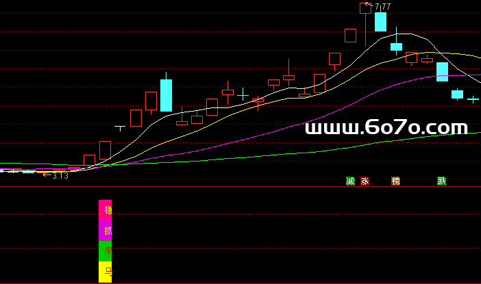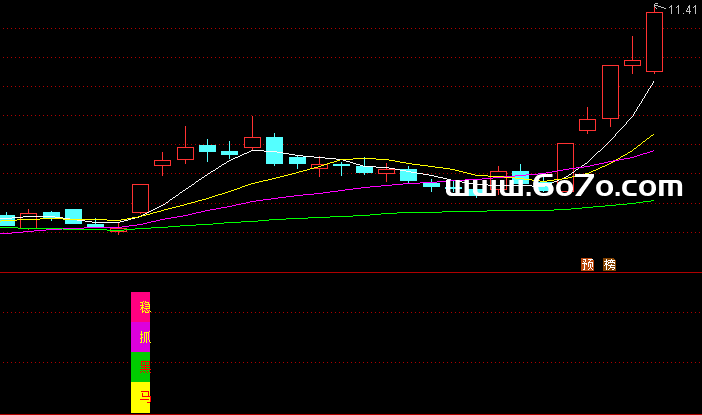 起爆赋值:收盘价上穿通道 AND 1日前的收盘价*1.05-收盘价<0.008 AND 收盘价>开盘价*0.5